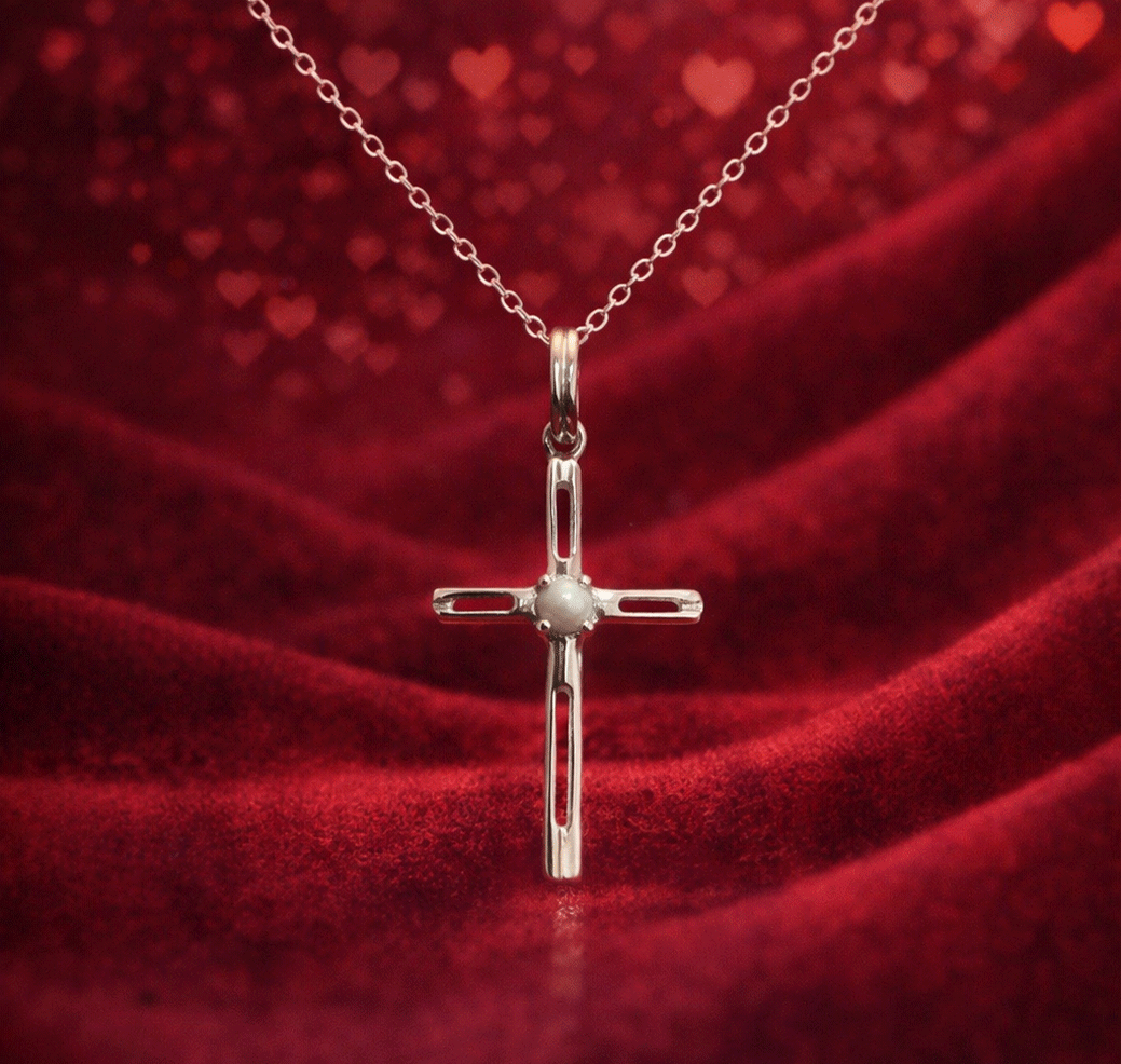 This exquisite Sterling Silver Cross Pendant showcases a natural Ceylon Cat’s Eye gemstone, celebrated for its rare optical “chatoyancy”—the striking light band that appears to glide across the stone.